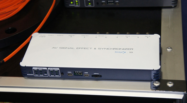 セレクター付きシンクロナイザーBridge X SDI。HD-SDI×3とHDMI×1の4系統の入力の切り替えが可能なほか、SDI/HDMIのクロスコンバーターを搭載しており、出力はHD-SDIおよびHDMIに対応