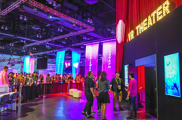 従来からVR関連の機材展示や、コンテンツ上映が盛んであったSIGGRAPHでは、今年からCG短編映像上映のコンピュータアニメーションフェスティバルのカテゴリのひとつとして新しくVRシアターが設けられた。VRシアターでは、VR関連の研究や、工業系、製造業系の利用は排除し、純粋に物語を語る手法のひとつとしてのVR作品に限定したシアターとして準備されたものだ。