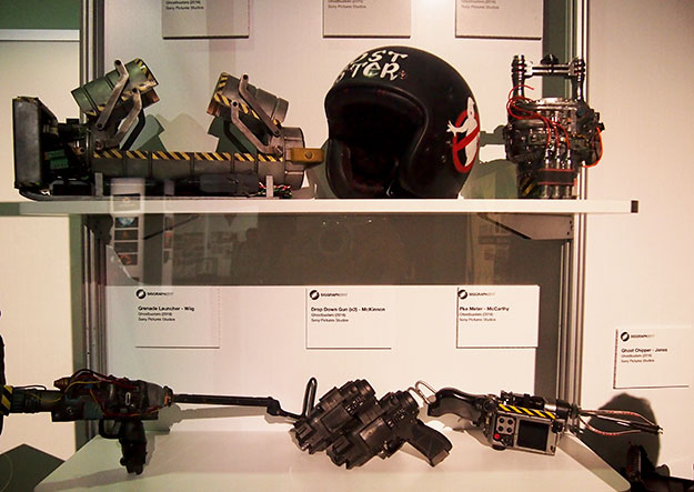リメイク版映画「ゴーストバスターズ」に登場した、ラウンチャー、銃、幽霊探知機
