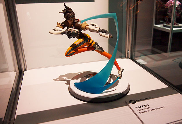 ブリザードエンターテインメント、オーバーウォッチのキャラクタ、トレーサーの模型。約30cmほどの大きさ