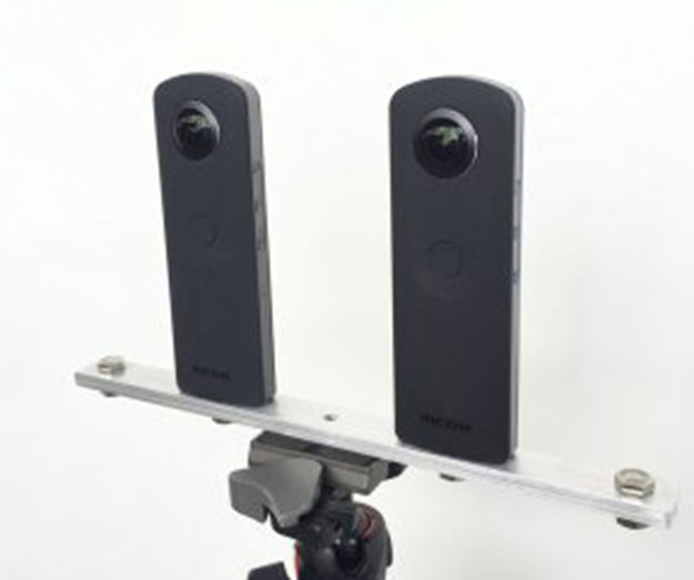リコーの360°撮影カメラTHETAを2台使った、安価なステレオ360°撮影技法。高価な360°立体視撮影専用カメラではなく、安価なTHETAを駆使し、できるだけ品質の高い撮影をする工夫。
