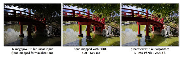写真のレタッチ(ゴミの除去などの修正)をカメラマンによる手作業を機械学習し、それらの作業を自動化する手法。コンピューティングパワーを極力使わない方法で、モバイル端末でも実現可能とのこと。