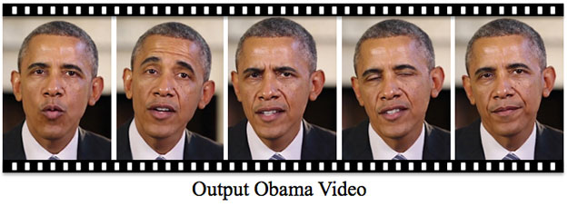 音声データに、オバマ元大統領の口の動きを合わせ、音声ぴったりと合ったリップシンク映像で再生する技術。口の動きは、CG合成した場合、人間が不自然さを感じ易い部分のひとつであるが、本研究では大量の機械学習により、違和感なく再現できている。オバマ大統領の演説映像を大量に学習させた成果。通信回線がおもわしくない状況でのテレビ会議を補間する技術や、VR空間での対話などに用いる可能性があるとのこと。フェイクニュースなどに活用されてしまう可能性があるなど、問題もはらんでいるが、一方それを防ぐため、合成された映像を見分ける研究なども進んでいる。