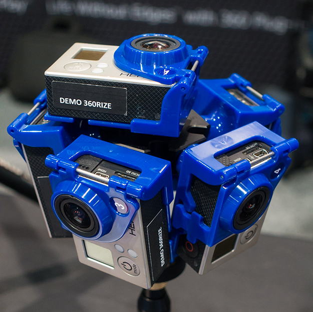 プロ向けのVRカメラを語る上で、昨年~今年は大きな展開がいくつも見られた。昨年10月、GoProから「OMNI」というVRカメラが発売された。これは「GoPro Hero4」を6台使用してリグで保持するという仕組みこそFreedom360などと同じだが、そのリグによりそれぞれのカメラが完全にピクセル単位で同期されているので、後でソフトウェアでシンクロさせる必要がない。