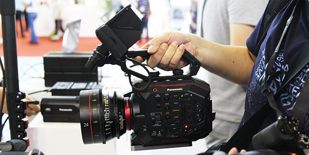 昨日はお昼に北京入りしたため、午後3時間程度しか会場を見て回ることができなかった。今日が本格的な取材である。まず向かったのはパナソニックのブース。NABではチラ見せだったスーパー35mmシネマカメラ「AU-EVA1」の実動モデルが展示されていた。