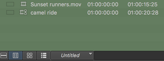 それぞれのリスト左部のアイコンをダブルクリックしてビンのウィンドウを開く。ビンのウィンドウ自体はリストでの表示、アイコンでの表示など(MCではそれぞれText View、Frame Viewと呼ぶ。ウィンドウ左下のボタンで切り替え)FCP7やPrと印象は変わらないのだが、大きく違うのが「ビンの中にビンが作れない」ということだ。デスクトップのような階層構造でのファイル管理はできない。