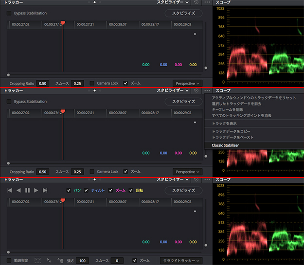 また、従来から評判の良いスタビライザー機能も一新された。アルゴリズムが一新されより良い結果が出やすいようになったようである。その反面細かいコントロールが効きにくくなっており、そういった場合は、「Classic Stabilizer」に切り替えると、12.5までと同じスタビライザーを使用することができる。