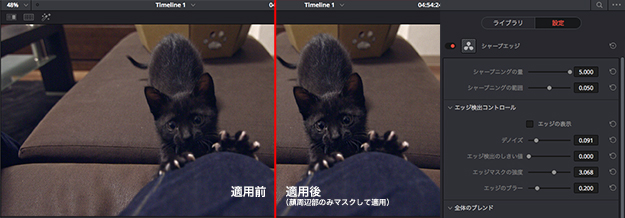 映像の中の輪郭を自動的に検出して、そのエッジ部分のみにシャープネスをかけてくれる。パワーウインドウやトラッキングを併用することで、多少のフォーカスの甘さの修正などには威力が大きい。