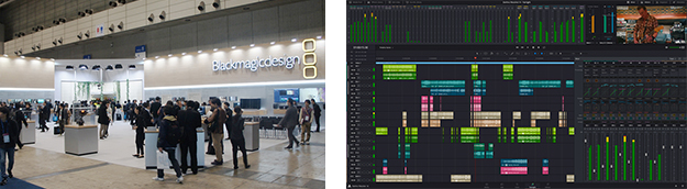 カメラやスイッチャー、コンバーター、モニタリング機材を多数リリースしている同社だが、目玉は編集、カラーコレクション、オーディオポストプロダクションツールの「DaVinci Resolve 14」とビジュアルエフェクト、3D、VR、モーショングラフィックソリューションの「Fusion 9」だろう。DaVinci Resolve 14は、最大で10倍ものスピードを実現し、新しいコラボレーティブワークフロー機能によりネットワーク上でメディアを共有したり、メッセージをやり取りして仕事を調整できる。Fairlight Audiotoolsに基づく新しいサウンドポストプロダクションスイートがDaVinci Resolveに統合されたのも大きなニュースだ。