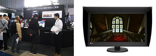 見どころは、HDR映像の明るさと色を正しく映し出す31.1型HDRリファレンスモニター「ColorEdge PROMINENCE CG3145」。HDRコンテンツの最終色調整を行うカラーグレーディング作業は、映像の色味やトーンを正しく確認するために高輝度・高コントラスト比のモニターを必要としており、CG3145はHDRコンテンツのカラーグレーディング作業に適したリファレンスモニターとしている。1000cd/m2の高輝度を確保すると共に、このスペックを安定して表示できるのが大きな特徴だ。また、コントラスト比100万:1やPQ方式/HLG方式を含むさまざまなガンマに対応している。映し出されたモノが本当にそこにあるかのようなリアルな映像は必見だ。