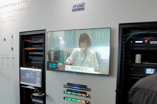 ソニーブースではIIJ飯田橋本社にリモートスタジオを設置し、幕張の会場とNEXION回線で接続。会場ではIP Liveプロダクションシステムにより、他社のブースの機器とネットワークを組んでいた