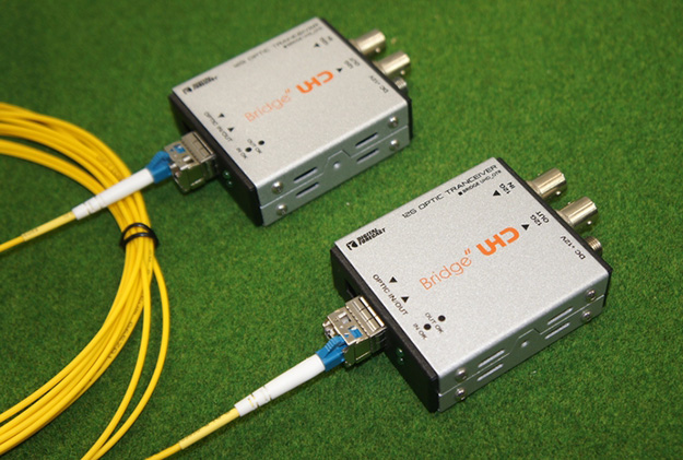 12G-SDIを光ファイバーを使って長距離伝送に対応なコンバーターDigital ForecastのBridge UHD。エーディーテクノブース