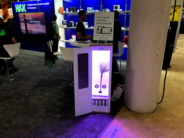 「grobo」は、Webサイトで「いろいろな植物を育てるためのコネクテッド育成ボックス」ということで紹介されている。この箱の中で植物を育てれば、育成状況をスマートフォンアプリなどでリアルタイムにモニタリングすることができる、とのことなのだが、ここCESの会場では思いっきり「自動的にいいマリファナを育てよう!」なんてプレゼンを行っていた。アメリカでは様々な州でどんどんマリファナの合法化が進んでおり、この他にもマリファナに特化した製品はいくつか見ることができた。