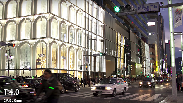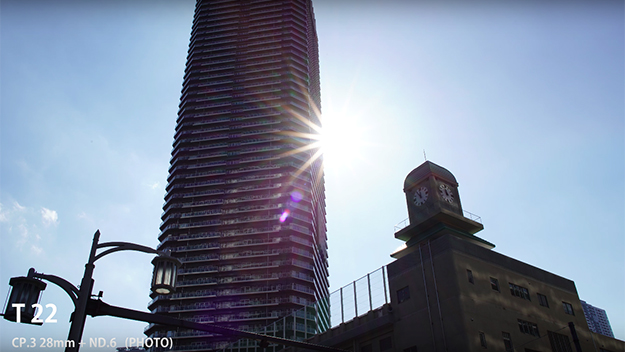 CP.3は、スチルカメラ用レンズと異なり、絵としての柔らかさをほんのりと残しつつ、フレアを活かした絵作りができ、絞りの変化による絵の違いを表現力として使っていける、そのような点が特長と言えると思います。ちなみにCP.2ではやや硬い描写感がありましたが、CP.3では少し柔らかい描写になり、フレアがより美しく絵に独特の品格を感じることができました。