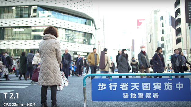 2018年2月4日。天気は快晴。ロケーションは銀座通りで行われる歩行者天国、通称「ホコ天」をテーマに選択しました。1970年8月から始まった歴史ある銀座のホコ天は街全体が活気に包まれ、以前から撮りたいテーマでもありました。昼の12時から17時までと限られた時間ですが、その場で感じられる雰囲気をテーマにしつつ、レンズを頻繁に交換しながらのワンマン撮影を行いました。