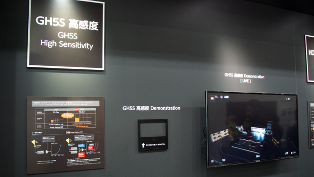 パナソニックブースの注目機種は、今年のCES 2018で発表された「GH5S」だ。GH5Sの特長は10.2M Live MOSセンサーの搭載で、有効画素数をGH5の20.3Mから減少させている。画素数が増えていく時代にあえてあえて10Mというセンサーを採用することにより、受光部の高感度性能を高めることを実現しているという。
