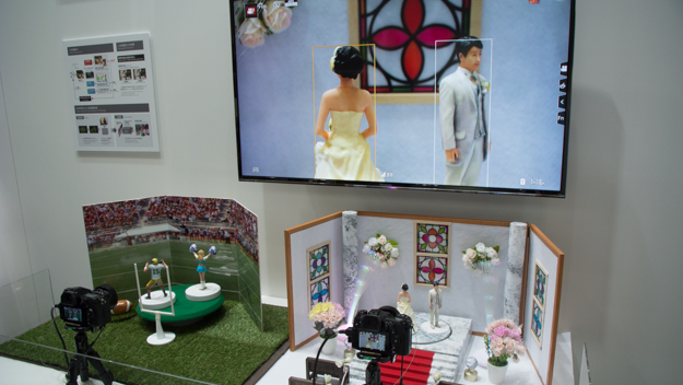 空間認識技術による高速測距のデモ。高速移動する被写体にも高精度にピントを合わせ続けられるという技術で、前後に動くおもちゃにピントを合わせ続けていた。