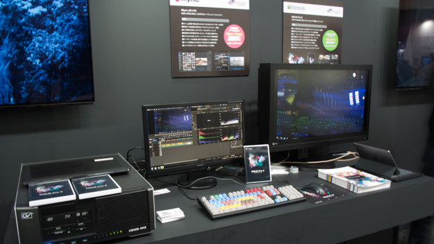 「4K動画活用コーナー」ではEIZOのHDRリファレンスモニター「CG3145」とEDIUSのソリューションのデモが行われていた
