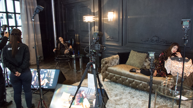 「Shooting Corner:ポートレート/屋内」のコーナー。デモ機は電波式ワイヤレス通信に対応した3台のストロボのシンクロが体験可能