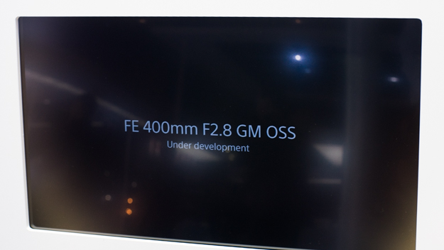 ソニーブースの中央に「FE 400mm F2.8 GM OSS」が初公開されていた。同レンズの感想を紹介する映像も公開されており、「逆光でもクリアだった」などの感想を紹介。詳しいスペックなどは公開されていない。