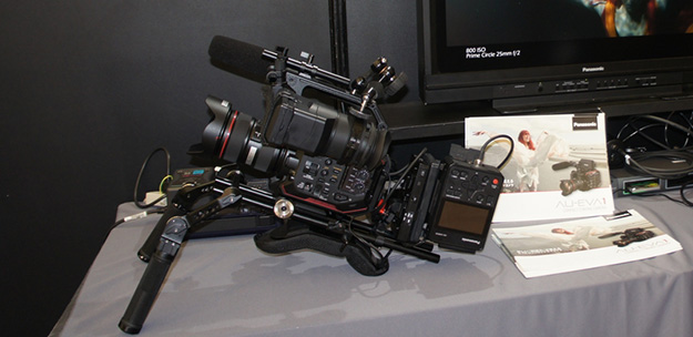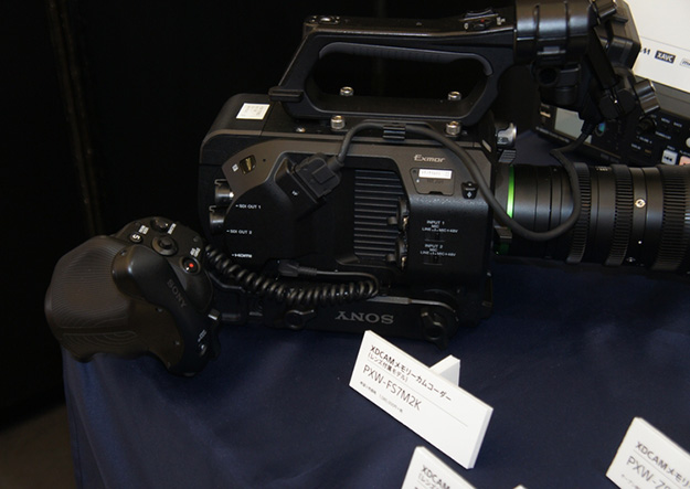 パナソニックはハンドヘルドやショルダー、三脚搭載での撮影の3つのシチュエーションを想定した3台のAU-EVA1を出展しており、AU-EVA1を中心に様々な撮影シーンでの使い勝手を検証できるようにしていた。ただ、交換レンズなどの用意がなく、その点はちょっと物足りない気がした。パナソニックは国内で開催されるアフターNABなど比較的小さな展示会では、その時に主力の製品に絞った出展を行っており、今回はCP+というカメラがメインの展示会ということもあり、AU-EVA1一択という道を選んだようだ。