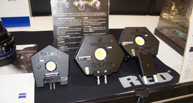 西華デジタルイメージはRED 8K MONSTRO VVや防塵防滴仕様の大光量LED照明Creamsource Micro、既存のハロゲンバルブの灯体LEDユニットを装着する事で、従来の灯体を最新のLED照明化する事ができるRELAMPなどを出展した。