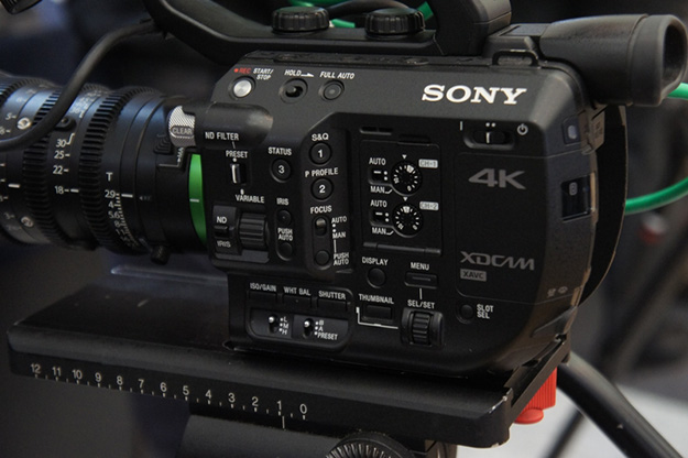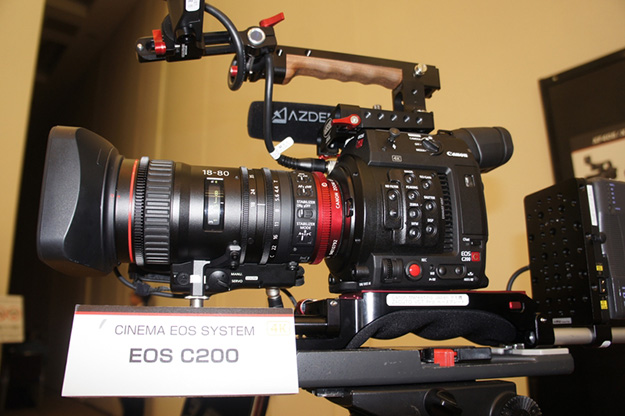 昨年PLマウントモデルが発売されたEOS C700。装着されていたCN7x17KASはサーボユニットを装着することでENGカメラ用にレンズのように使用することができる。EOS C700は肩乗せ式のENGカメラにスタイルが近いので、こうしたレンズと組み合わせることで、ENGスタイルでデジタルシネマ撮影に対応できるという。なお、EFレンズモデルではオートフォーカスを利用でき、高精度なピント合わせが可能。