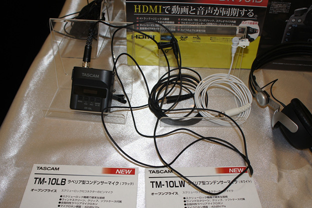 ラべリア型コンデンサーマイクTM-10LB(黒)、TM-10LW(白)。抜け止め防止のロック機構付きコネクターを装備。DR-10Lに付属のマイクロホン。