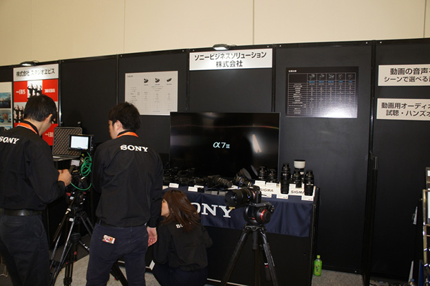 静かな場所で落ちついて見られるという利点はあるものの、メイン会場とは反対側に位置し、両方を見る来場者にとっては残念である。本日が最終日となるので、見逃しのないように回ってみよう。なお、出展メーカーはソニーやパナソニック、キヤノンなど主なカメラメーカーのほか三脚やバッテリーなどの周辺機器メーカーなどがそろっており、撮影関係の機材が中心になっている。
