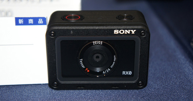 DSC-RX0は防水仕様で59.0×40.5×29.8mm110gという小型な形状ながら1型のセンサーを搭載している。落下などの耐衝撃性能も搭載しており、バイクやスキー、ヘルメットなどに装着して迫力のあるシーンを収録できる。