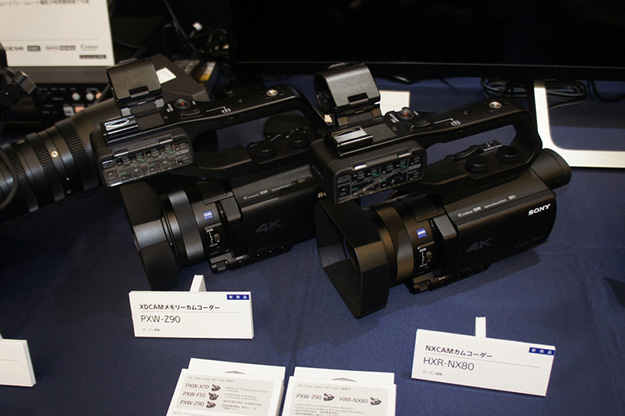 ソニーはXDCAMメモリーカムコーダーPXW-Z90やNXCAMカムコーダーHXR-NX80のほか、デジタルスチルカメラDSC-RX0が主な新製品となっている。DSC-RX0は場違いな気もするがAVCHDコーデックでフルHD60p収録が可能なほかXAVC S HDコーデックで最大240fpsのハイフレームレートの収録ができるので、バラエティー番組などで仕込みカメラとして充分活用できるだろう。PXW-Z90とHXR-NX80はいわゆるハンドヘルド型のカメラで外観もよく似ているがPXW-Z90のほうはXAVC Long記録に対応しているほか、3G-SDI出力コネクターが装備されているところが大きな違いとなっている。