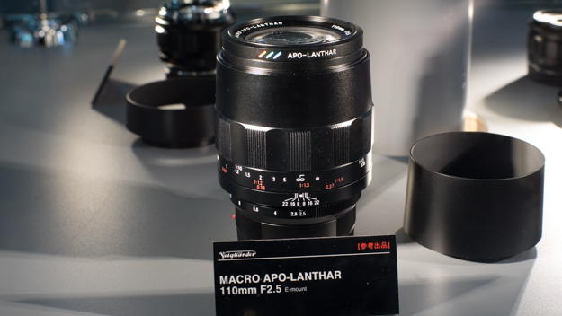 注目の製品は、参考出品として展示されていた「MACRO APO-LANTHAR 110mm F2.5 E-mount」と「COLOR-SKOPAR 21mmF3.5 Aspherical E-mount」、「NOKTON 50mm F1.2 Aspherical VM」。「MACRO APO-LANTHAR 110mm」と「NOKTON 50mm」はブース内カウンターにて実際の製品を試すことができるようになっていた。