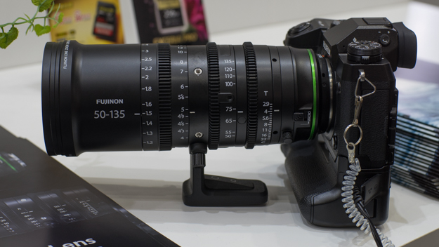 X-H1の動画撮影コーナーでは、Xマウント対応のFUJINONシネマレンズ「MKX18-55mmT2.9」と「MKX50-135mmT2.9」が展示されていた。焦点距離全域でT2.9の明るさを実現し、浅い被写界深度でボケ味を活かした映像の撮影が可能。焦点距離27-84mmの標準ズームレンズ「MKX18-55mm」と、同76-206mmの望遠ズームレンズ「MKX50-135mm」で、常用焦点距離全域をカバーすることができる。