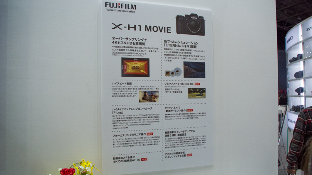 富士フイルムブースの注目は、タッチ&トライコーナーだ。2月15日に発表されたばかりのミラーレスカメラ「X-H1」が試せるようになっていた。最大の特長は、「Xシリーズ」で初めてボディ内5軸・最大5.5段手ブレ補正機能を搭載したところだ。