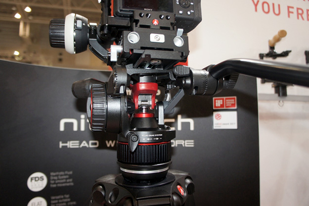 カウンターバランスが0~8kgのビデオヘッドNitrotech N8は昨年のNABでも話題になったが、カウンターバランスが4~12kg無段階のN12が新製品として出展された。カウンターバランスには金属製のスプリングを使うのが一般的だったがNitrotechは窒素ガスを充てんしたシリンダーをバネとして採用している