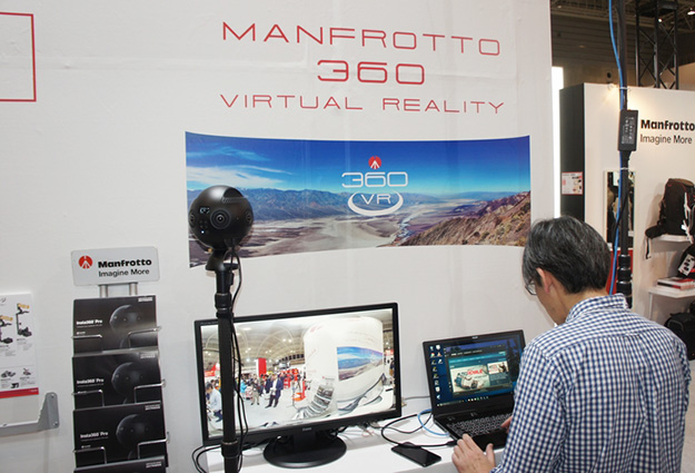 新製品の360°撮影用に開発されたポールや三脚を使いブース内で撮影デモを行っていたほか、3月発売のトラベル三脚befreeの後継機種befreeシリーズおよびbefree liveのラインナップや、DJI社製ドローンMavic用のバッグドローンスリングバッグM-1などを出展した。