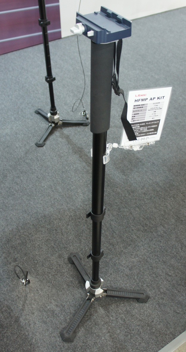 平和精機工業は一眼レフカメラにも最適な一脚ハンズフリーモノポッドHFMPや、三脚システムRSシリーズのほか、スライダーシステムLIBEC ALLEXなどを出展した。