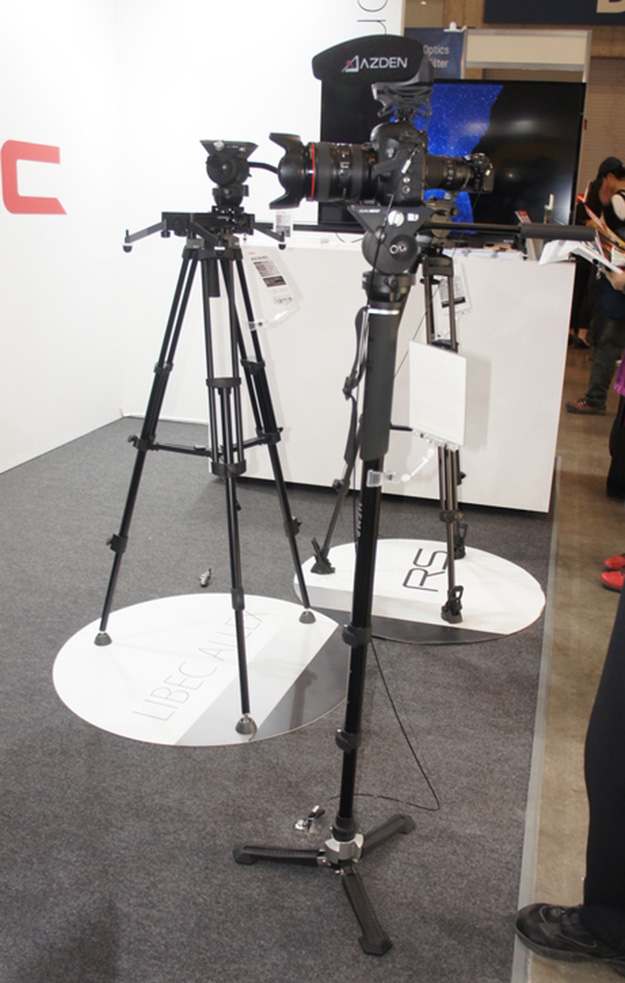 一眼レフカメラにも最適な一脚HFMP AP KITや、三脚システムTH-X、LIBEC ALLEXなどを中心に出展。ビデオヘッドはバランスを一度合わせれば、どのティルト角度でもバランスがピッタリ取れる無段階カウンターバランスと、-40~60℃と幅広い耐温度性能を持つトルクシステムを採用