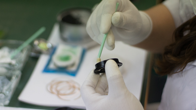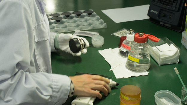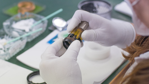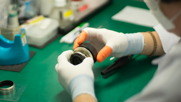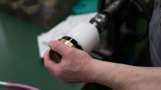 手作りのこだわりでレンズが組み立てられていく
