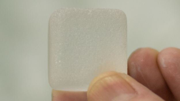 バレル研磨機に投入した硝材。エッジが丸くなっている