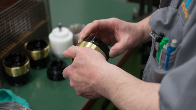ヘリコイドは別々に加工されるため、加工した切りっぱなしの状態では滑らかなフォーカシングが実現できない。そこで、ヘリコイドの螺旋状のねじ部に研磨剤を塗り、手作業で摺合せるラッピングと呼ばれる作業を行う。コシナのスムーズなフォーカスの感触は、このラッピングによって実現している。最後に使うのは人の手だからこそ、人の手による確認作業を行うことで滑らかな感触を実現している。