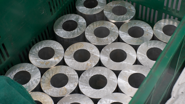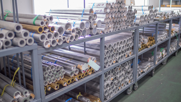 一般的な交換レンズの鏡筒には安価に製造が可能な樹脂製が多いが、コシナは耐久性のある総金属製でできている。鏡筒にアルミ、レンズマウントは真鍮を使っており、倉庫にはそれらの材料がズラリと保管されていた。