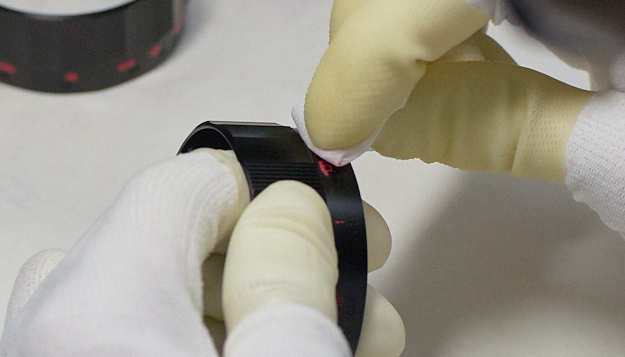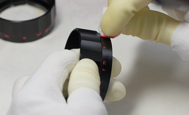 距離リングの数字や記号には、シルクスクリーン印刷と呼ばれる手法が一般的。しかし、コシナの交換レンズは鏡筒に彫刻をしている。彫刻文字による刻印はシルク印刷よりも手間も時間もかかるが、「お客様にレンズを長く愛着持って使って欲しく、彫刻は決して消えることがない」との思いから、この手法で行っている。