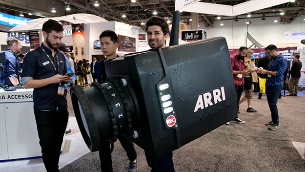 本日はARRIブースの取材がスタートとなった。カメラ、LED照明など普段触ることができない、映画用の最高峰に触れることができるというのはこういう機会だからこそ。特にLED照明のSkypanelはあらゆる色を創出することができる。例えば水銀灯の色や蛍光灯の色などフィルターワークを行わずとも、必要な色を作れてしまうという優れモノ。撮影現場での作業効率を大幅に改善してくれるソリューションに感心してしまった。