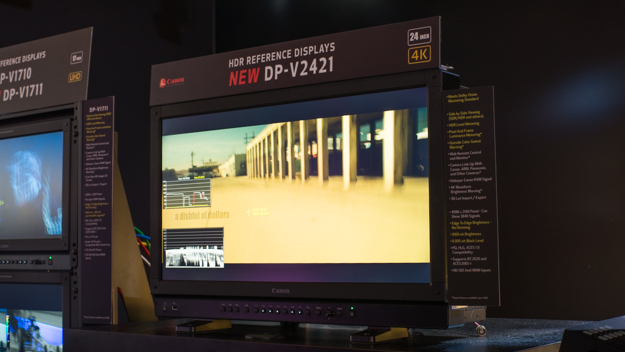 DP-V2421は、24インチの4Kリファレンスディスプレイで、発売は4月下旬、価格はオープンで市場想定は316万。こちらも4K映像をケーブル1本で受信可能な12G-SDI端子を搭載。4本で4Kが入り、チャンネルでスムーズに切り替えが可能。最大1200cd/m2の高輝度に対応し、RGBのLEDを使っていて、色域を広く表現することができる。