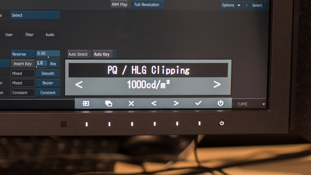 HLGは、輝度値を相対的に扱うのでバリアブルに変わっていくが、CG319Xのクリッピング機能を使えばクリッピングする輝度まではターゲットとなる輝度のモニターで見たときと同じ輝度で表示できる。