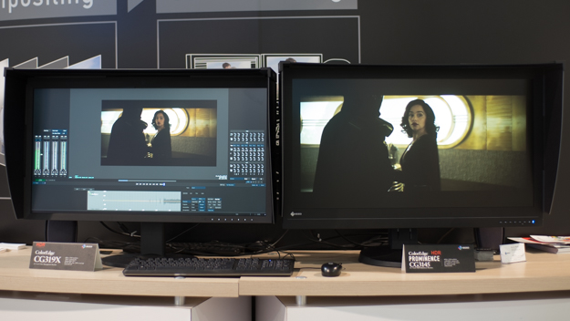 HDRリファレンスモニターの「ColorEdge PROMINENCE CG3145」(以下:CG3145)も展示されていた。CG3145は最大輝度1000cd/m2でコントラスト比100万:1 を実現。CG319XとCG3145を比べて、どのぐらいの差があるのかを確認できるように展示されていた。実際に比較をしてみると、液晶モニターで黒を表示するというのは困難だが、CG3145は黒がきちんと絞まって表示されているという印象に見えた。