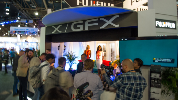NABの富士フイルムブースにXシステムやGFXシリーズなどのミラーレスデジタルカメラのコーナーが設けられており、タッチ&トライができるようになっていた。来場者は、スチルを撮ったり動画機能を試していた。