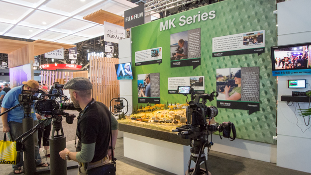 富士フイルムはNABの同社ブースで初めてミラーレスデジタルカメラと交換レンズを体験できるコーナーを設置