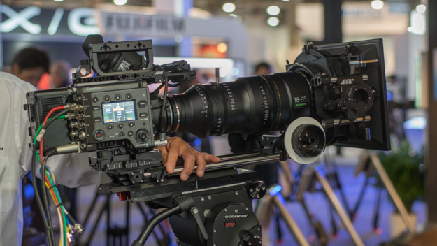 ソニーのフルサイズ6KカメラVENICEにDuclos Lensesの光学エクステンダーを使って18-85mmのレンズを組み合わせて展示